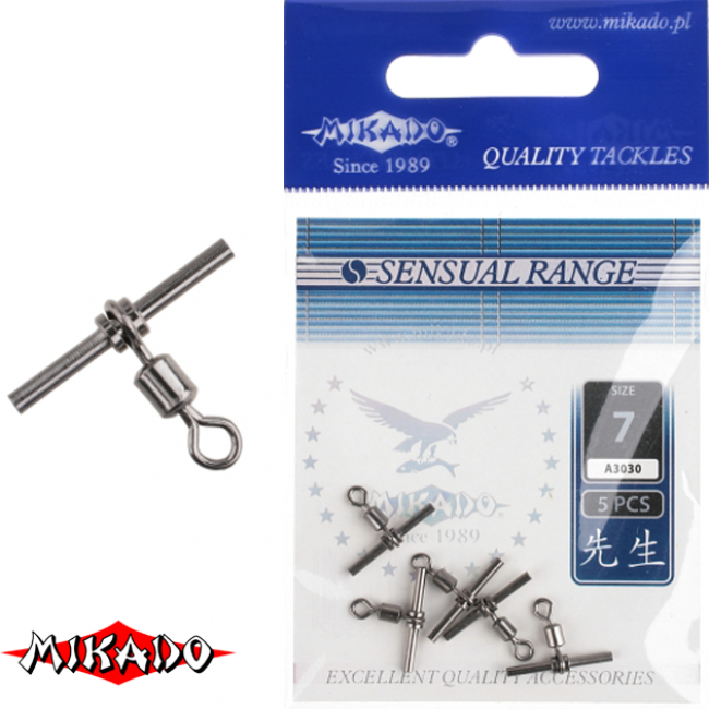 AMA-A3030- 7 Вертлюг роликовый "Mikado" с крепёжной трубкой №7 (р.н. до 22кг/упак.=5)  (AMA-A3030-7)