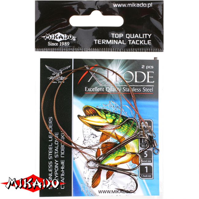 Каталог » ОСНАСТКА » Поводки » Поводки Mikado » Арт.ZG11-016 Поводок X-Plode "Mikado" стальной с тройником №1 (уп.2 ) вертлюг №5, 10кг / 40см (ZG11-016)