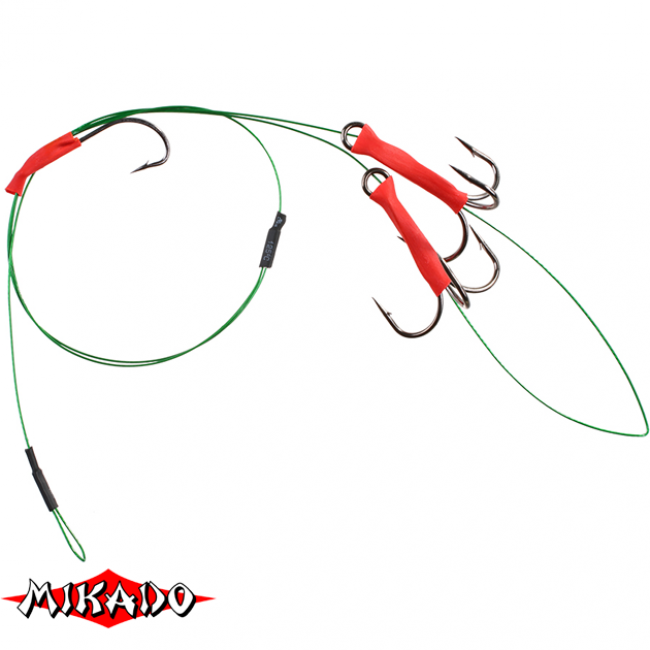 Каталог » ОСНАСТКА » Поводки » Поводки Mikado » Арт.ZG11-021 Поводок X-Plode "Mikado" стальной комбинированный с 2-мя тройн. №1 и крюч. №2 (уп.2 ) зелёный, 10кг / 40 см (ZG11-021)