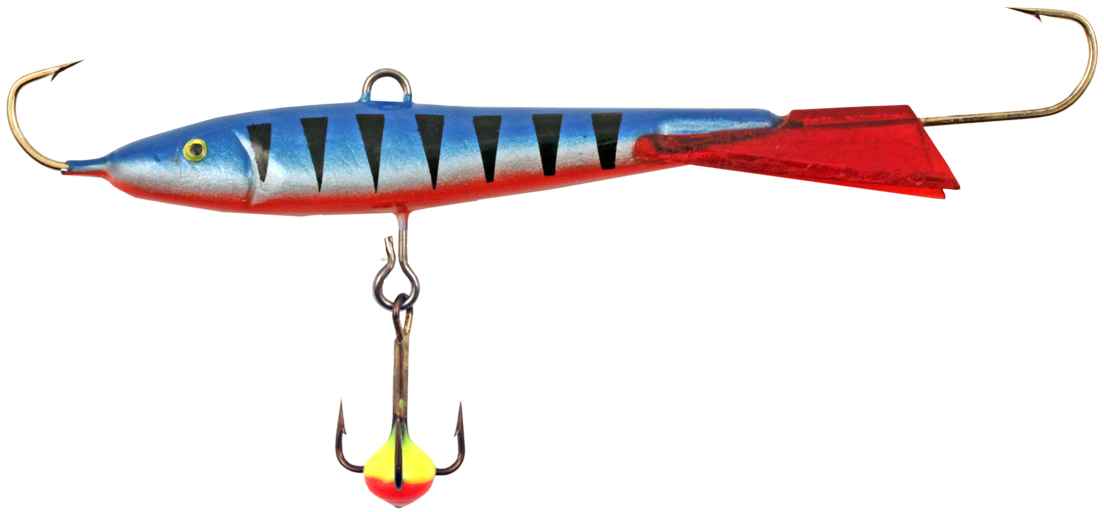 Зимний балансир для ловли окуня, щуки и судака. Балансир оснащен впаянными крючками - "KAMASAN" и подвесным тройником "MUSTAD"