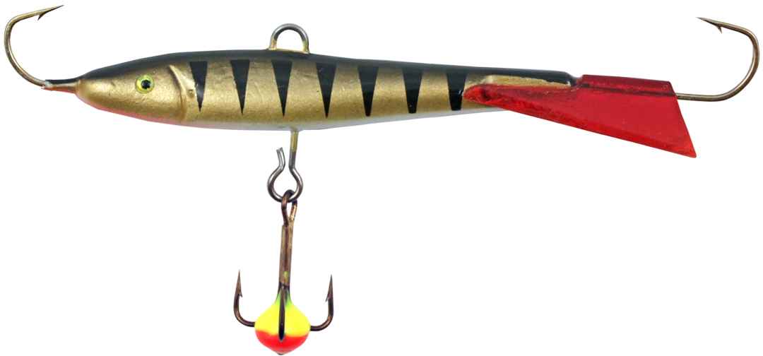 Зимний балансир для ловли окуня, щуки и судака. Балансир оснащен впаянными крючками - "KAMASAN" и подвесным тройником "MUSTAD"