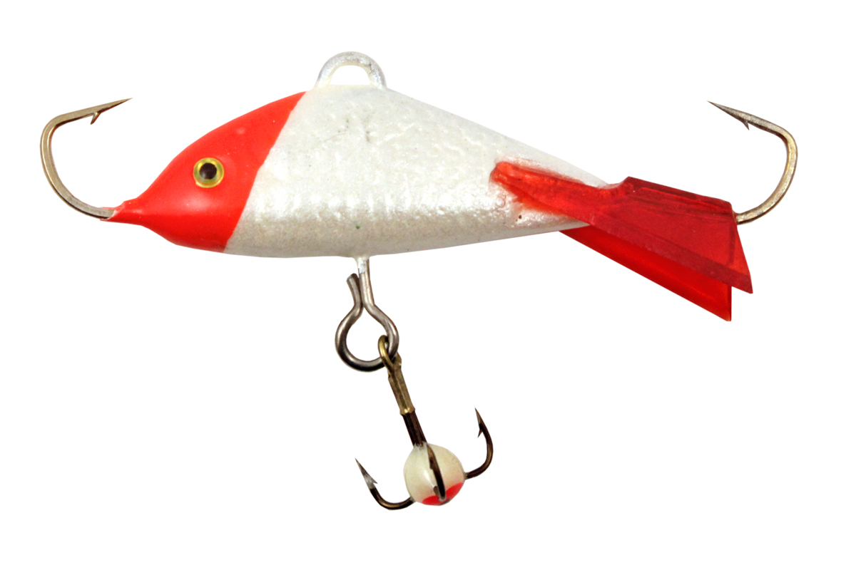 Зимний балансир для ловли окуня. Балансир оснащен впаянными крючками - ""KAMASAN"" и подвесным тройником ""MUSTAD""