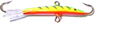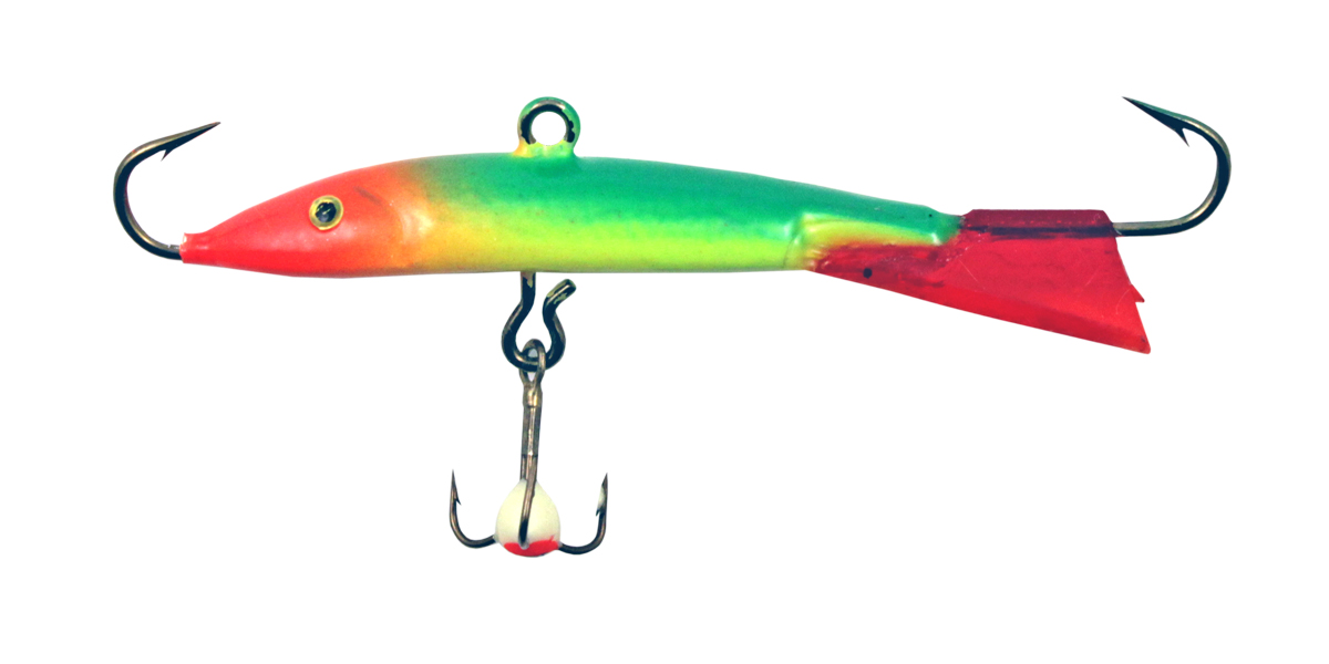 Зимний балансир для ловли окуня. Балансир оснащен впаянными крючками - ""KAMASAN"" и подвесным тройником ""MUSTAD""