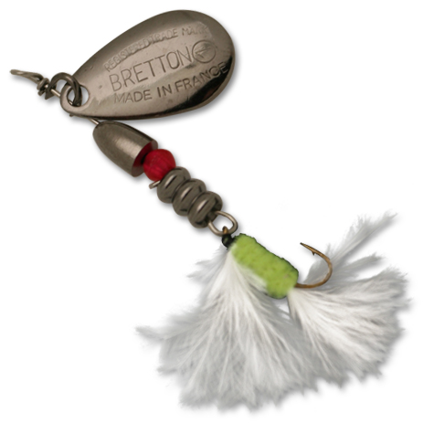 Bretton Streamer выпускается в трех ультралайтовых размерах весом от 1.6 до 5 грамм. Но при относительно небольшом весе и размерах, при правильно подобранной снасти, блесенка далеко и точно летит, благодаря отличной аэродинамике и намокшему стримеру, который в полете слипается в пучок и распушается только в воде. Оснащена одинарником. Рыболовы – спортсмены оценили этот момент по достоинству, - есть возможность отпустить рыбу, не травмируя ее лишний раз.