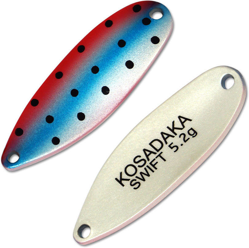 Блесна Kosadaka Trout Police Swift (5.2г) AA22 Эта модель весом 5,2г и длиной 40мм - проворный и шустрый тяжеловес, который позволяет совершать максимально дальние забросы, находить и соблазнять на поклевку даже самую осторожную рыбу. Классическая форма заставляет блесну совершать широкие размашистые движения при любой скорости проводки. Эта поистине универсальная модель подходит для ловли почти всех видов рыб, но в основном используется для ловли относительно крупных экземпляров ручьевой и радужной форели, хариуса, кумжи, голавля, язя, жереха, берша и окуня, а также некрупного судака и щуки. Количество разновидностей цветов и форм придётся по вкусу всем - как рыбакам, так и рыбам, ведь теперь подобрать нужную блесну - это не проблема! Качество блесён как всегда безупречное! Все блёсны оснащены острейшими крючками Kumho с бородкой, чтобы гарантировать уверенную подсечку и успешное вываживание. Также стоит отметить, что все блёсны этой линейки выполнены из латуни, поэтому им не грозит ржавчина и отслоение лакокрасочного покрытия!