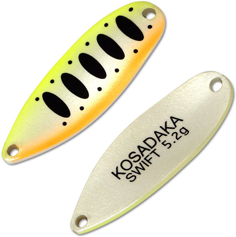 Блесна Kosadaka Trout Police Swift (5.2г) AH08 Эта модель весом 5,2г и длиной 40мм - проворный и шустрый тяжеловес, который позволяет совершать максимально дальние забросы, находить и соблазнять на поклевку даже самую осторожную рыбу. Классическая форма заставляет блесну совершать широкие размашистые движения при любой скорости проводки. Эта поистине универсальная модель подходит для ловли почти всех видов рыб, но в основном используется для ловли относительно крупных экземпляров ручьевой и радужной форели, хариуса, кумжи, голавля, язя, жереха, берша и окуня, а также некрупного судака и щуки. Количество разновидностей цветов и форм придётся по вкусу всем - как рыбакам, так и рыбам, ведь теперь подобрать нужную блесну - это не проблема! Качество блесён как всегда безупречное! Все блёсны оснащены острейшими крючками Kumho с бородкой, чтобы гарантировать уверенную подсечку и успешное вываживание. Также стоит отметить, что все блёсны этой линейки выполнены из латуни, поэтому им не грозит ржавчина и отслоение лакокрасочного покрытия!