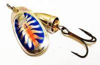 Еще одна вращающаяся блесна от компании Blue Fox – это Vibrax Fluorescent. Лепесток данных блесен вращается под углом 45 градусов, они показывают самые лучшие результаты на глубине 0,6-1,2 метра. Приманки созданы таким образом, чтобы защищать леску от перекручивания. Длинный латунный сердечник покрыт серебром или медью, далее слоем краски или другим цветным покрытием. Использованы невероятно прочные и острые тройники VMC. Игра блесны и без того привлекательная, сопровождается звуковым эффектом. Ось вращалок серии изготовлена из нержавеющей стали, а лепесток из латуни, покрытой серебром или медью. На лепестках краской нанесены соблазнительные цветные узоры.