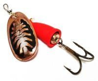 Еще одна вращающаяся блесна от компании Blue Fox – это Vibrax Fluorescent. Лепесток данных блесен вращается под углом 45 градусов, они показывают самые лучшие результаты на глубине 0,6-1,2 метра. Приманки созданы таким образом, чтобы защищать леску от перекручивания. Длинный латунный сердечник покрыт серебром или медью, далее слоем краски или другим цветным покрытием. Использованы невероятно прочные и острые тройники VMC. Игра блесны и без того привлекательная, сопровождается звуковым эффектом. Ось вращалок серии изготовлена из нержавеющей стали, а лепесток из латуни, покрытой серебром или медью. На лепестках краской нанесены соблазнительные цветные узоры.