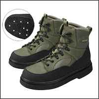 Ботинки обеспечивают высокий коэффициент сцепления с мокрыми и скользкими поверхностями, позволяя ловить рыбу даже в труднодоступных местах. - войлочная подошва обеспечивает наилучшее сцепление на гладких и скользких подводных камнях. - дополнительно в специальные отверстия устанавливаются шипы - верх ботинка выполнен из высококачественной кожи - усиленные узлы крепления шнурков - вставки из Cordura - дополнительная защита пальцев ног и пятки - дополнительная защита лодыжки - встроенные противоскользящие шипы