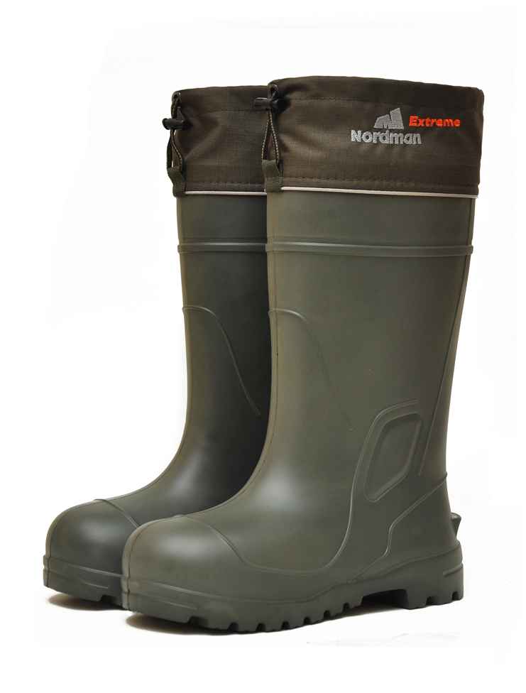 Сапоги Nordman Extreme для охоты, рыбалки, а также хозяйственной деятельности в суровых экстремальных климатических условиях при крайне низких температурах. Отличаются высоким подъемом, широким голенищем, утолщенными стенками и усиленным носком. Внутри влагоотводящий многослойный вкладыш Extreme-60 с использованием плотного натурального меха (не менее 60%), фольгированного полотна с волокнами льна и шерсти. Полиэфирная сетка и усиленная пятка обеспечивают вкладышу защиту от преждевременного истирания. Добавлена плотная двухслойная стелька из льна и полиэфира для защиты от конденсата Сапоги Nordman Extreme достойно выдержали испытания в условиях полярной зимы.