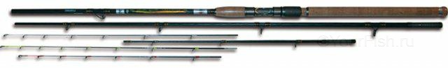 Фидер специально разработан для ловли на реках с сильным течения для ловли большой и сильной рыбы с тяжёлыми кормушками. Ручка из натуральной пробки, кольца SIC, катушка держатель усилен углеродистой сталью. Оснащается 3-мя вершинками и жестким чехлом с кармашком для вершинок.