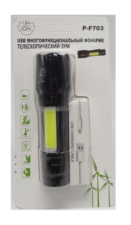 Модель Фонарь ручной аккум. P-F703 Zoom Micro USB + Cob боковой