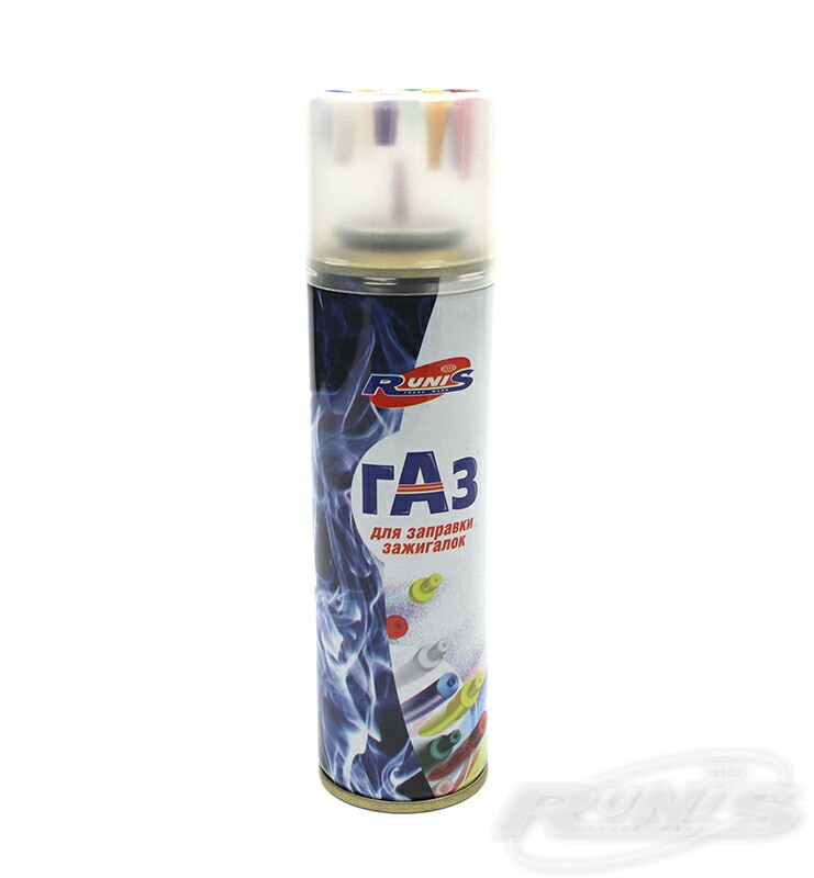 Каталог » ТУРИЗМ » Газовое оборудование » Следопыт » Газ для зажигалок RUNIS Premium, метал. баллон, 210 мл (с переходниками)/24/