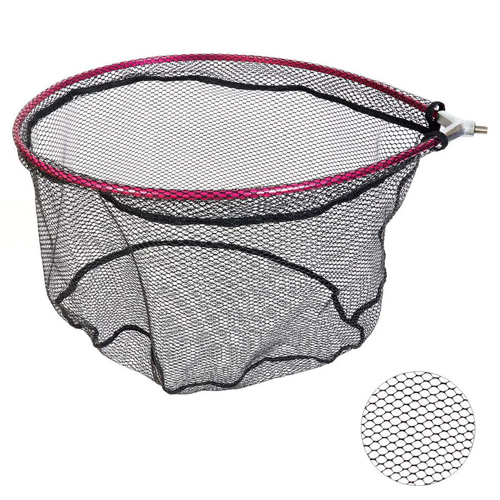 разм.50х40см/яч.0.5х0.5см/мат.полиэстер прорезинен. Голова для подсачка с прорезиненной сеткой, которая меньше травмирует рыбу и облегчает процесс извлечения зацепившихся крючков.