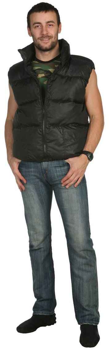 Утепленный жилет. - центральная застежка на молнию; - проймы обработаны эластичной лентой; - низ жилета регулируется по ширине резиновым шнуром; - количество карманов 3.