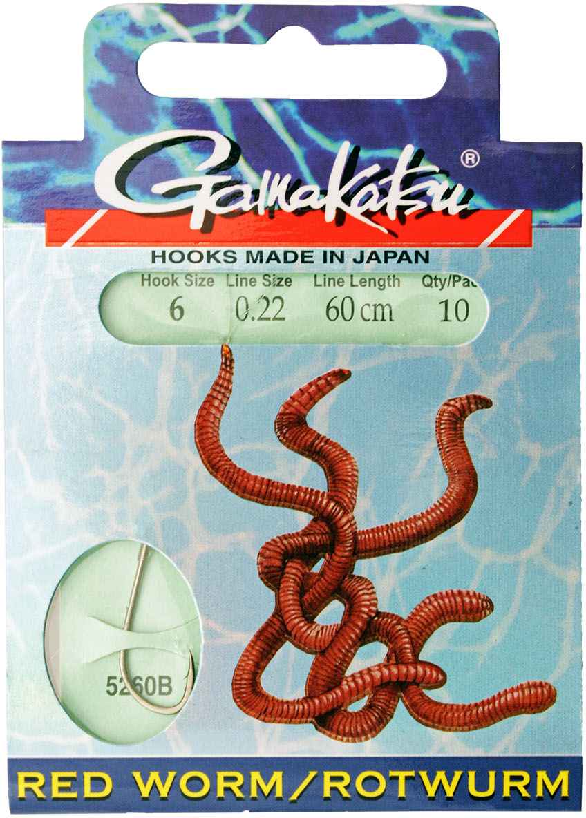 Каталог » ОСНАСТКА » Крючки » Крючки Gamakatsu, SIWEIDA » Крючок GAMAKATSU BKD-5260B Red Worm 60см №6 d поводка 022 (10шт.)