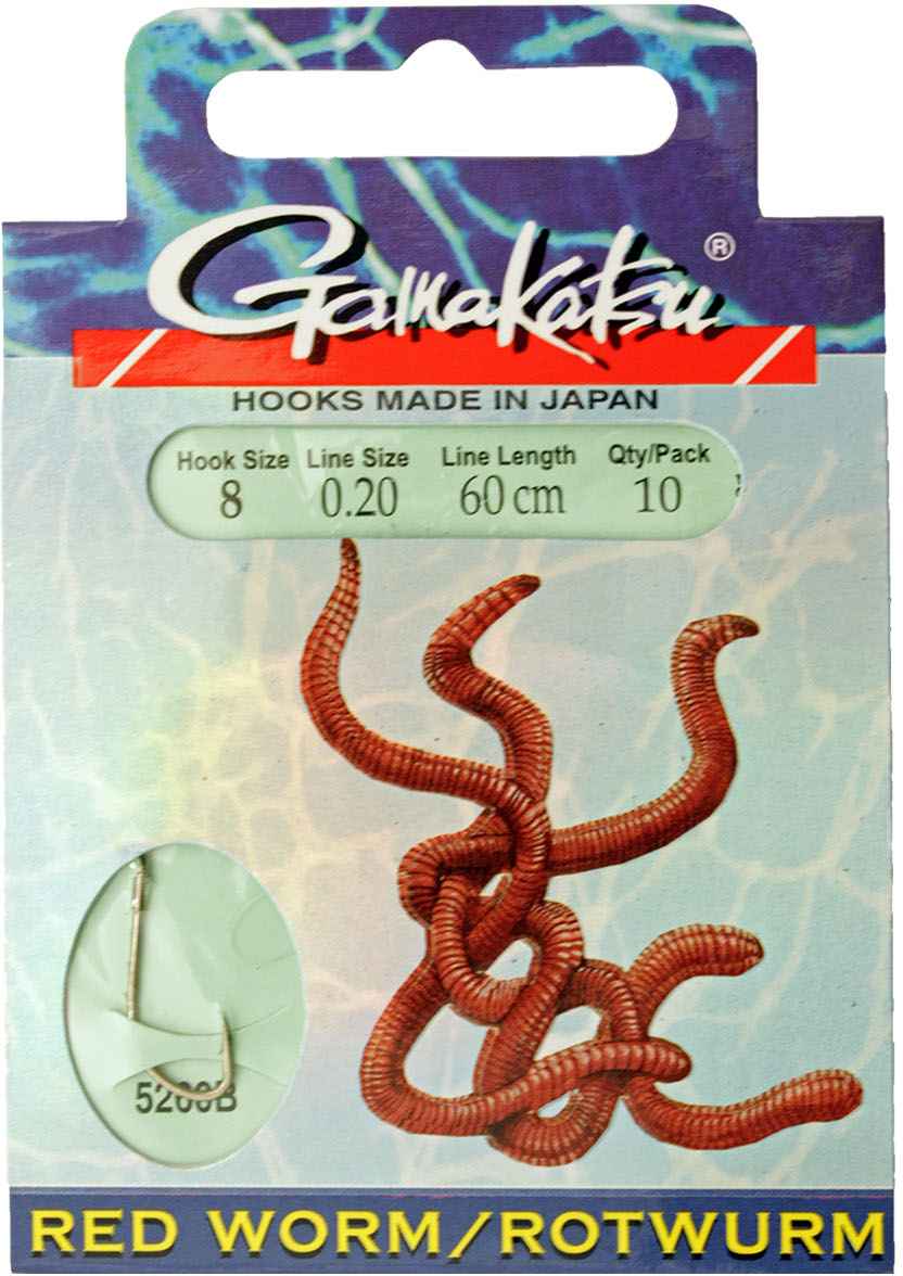 Крючок GAMAKATSU BKD-5260B Red Worm 60см №8 d поводка 020 (10шт.)