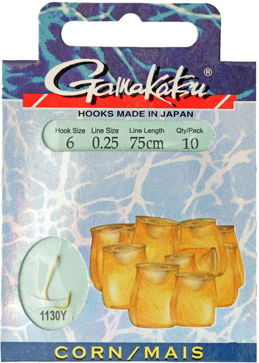 Каталог » ОСНАСТКА » Крючки » Крючки Gamakatsu, SIWEIDA » Крючок GAMAKATSU BKS-1130Y Corn 75см №6 d поводка 025 (10шт.)
