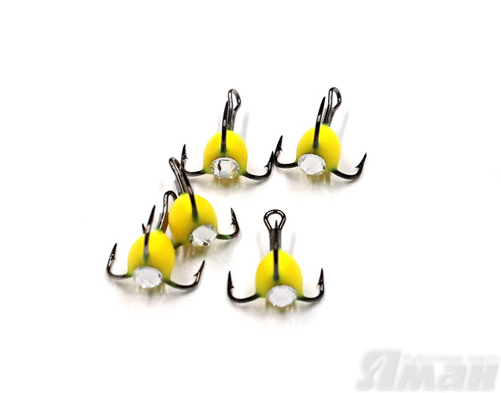 Каталог » ОСНАСТКА » Крючки » Тройники » Яман » Крючок-тройник ЯМАН с камнем, размер 14 (INT), цвет ФЖ (5 шт.)