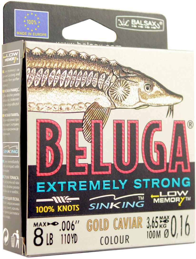 Леска "BELUGA" - это самый современный монофиламент доступный для удильщиков. Специальная формула сополомера гарантирует супер прочность, безотказную крепость на узлах и стойкость поверхности лески на истирание. Имеет уменьшенную растяжимость и поэтому немедленно информирует о всех прикосновениях рыбы. Она малочувствительна на повреждения и загрязнения. Цвет лески - GOLD CAVIAR