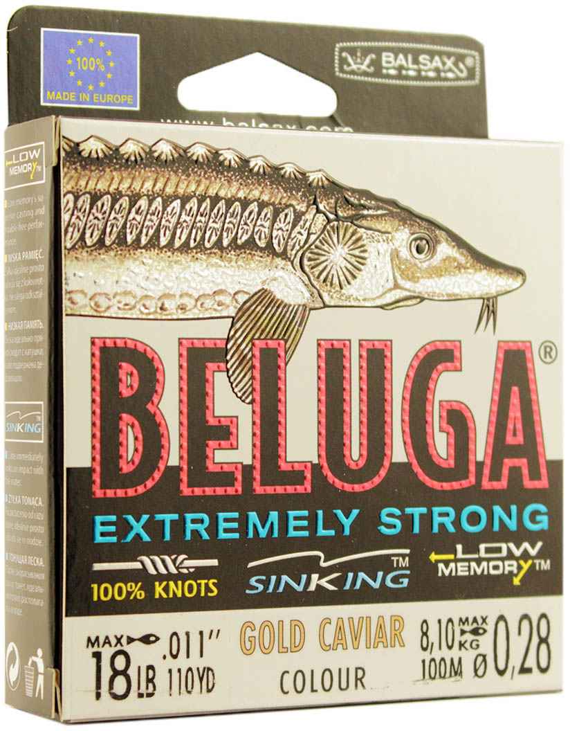 Леска "BELUGA" - это самый современный монофиламент доступный для удильщиков. Специальная формула сополомера гарантирует супер прочность, безотказную крепость на узлах и стойкость поверхности лески на истирание. Имеет уменьшенную растяжимость и поэтому немедленно информирует о всех прикосновениях рыбы. Она малочувствительна на повреждения и загрязнения. Цвет лески - GOLD CAVIAR