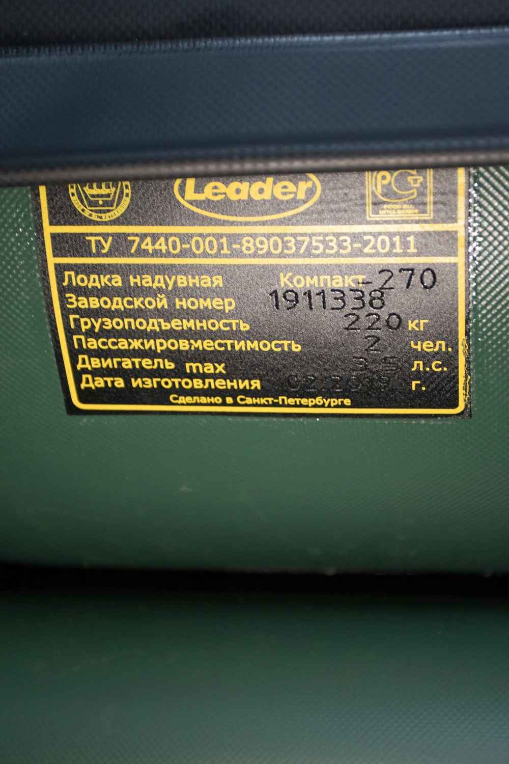 Каталог » ЛОДКИ » Лодки ЛИДЕР » Лодка ПВХ Компакт-270 гребная (НДНД, цвет зеленый)