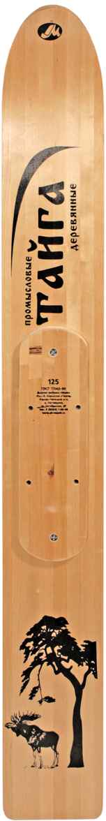 Лыжи промысловые Тайга применяются в зимнее время для передвижения по снегу охотников, рыбаков, туристов, геологоразведочных групп, нефтяников, газовиков, энергетиков. Промысловые лыжи изготовлены из лиственных пород деревьев (береза, осина) согласно ГОСТ 17043-90 и по технологии производства ни чем не отличаются от лыж Охотник. Единственное технологическое отличие – лыжи "Тайга" сверху покрыты пластиком АБС с нанесенным рисунком. Как и у Охотника, у Тайги прикреплена площадка для крепления, а в носке просверлена дырка для использования их в качестве волокуш. Благодаря своей дешевизне промысловые лыжи пользуются большой популярностью у любителей зимних лыжных прогулок по лесу, а также у нефтяников и газовиков. Деревянные лыжи применяются в температурном диапазоне от -10С до -30С. Необходимым условием их эксплуатации является смоление скользящей поверхности (для предотвращения намокания древесины). При этом смоление производится в течение зимы по мере необходимости (истирания скользящей поверхности), но не менее 1 раза в сезон. Размер: 125 х 15 см.