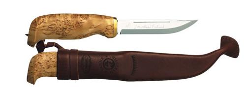 Нож выпущен к 110-летию основателя Маrttiini. Рукоятка выполнена из карельской березы, удобно располагается в руке. Лезвие изготовлено из нержавеющей хромированной стали. Прекрасный подарок любителям путешествий.