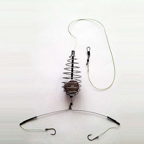 Кормушка с грузом на оси/карабин с вертлюг. №8/плетеный шнур диам. 0,35/крючки №10