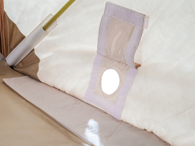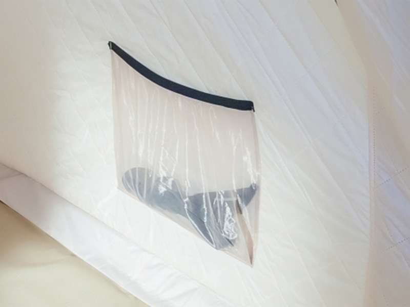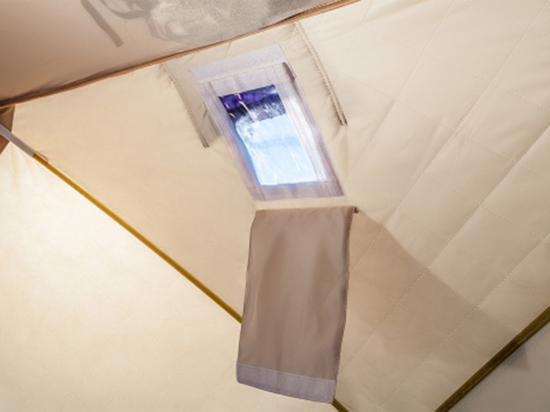 Палатка оснащена отстегивающимися клапанами для притока свежего воздуха. Окна также оснащены съемными прозрачными клапанами, благодаря чему можно регулировать и настраивать вентиляцию.