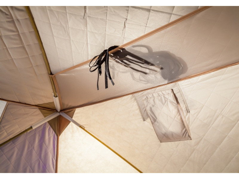 Палатка имеет 2 внутренние юбки, с системой крепления для пола (лента Велькро). Это полностью исключает возможность поддувания холодного воздуха.
