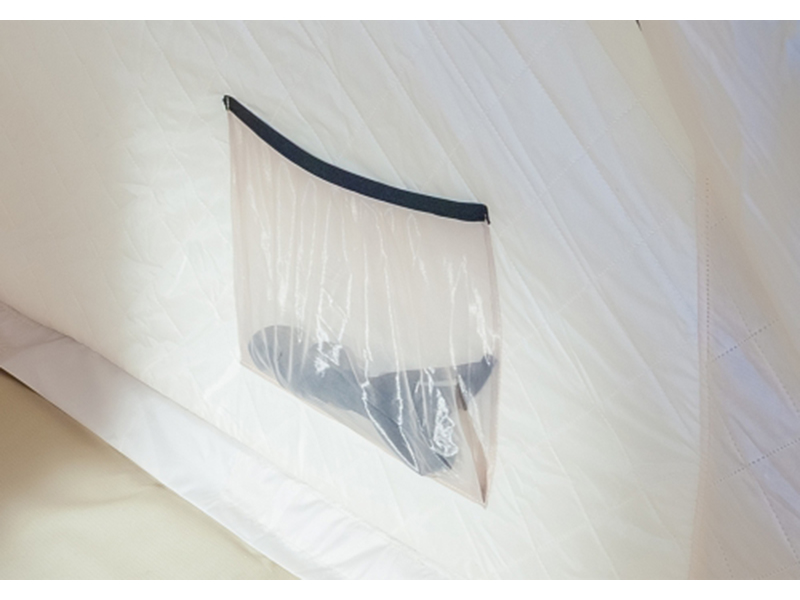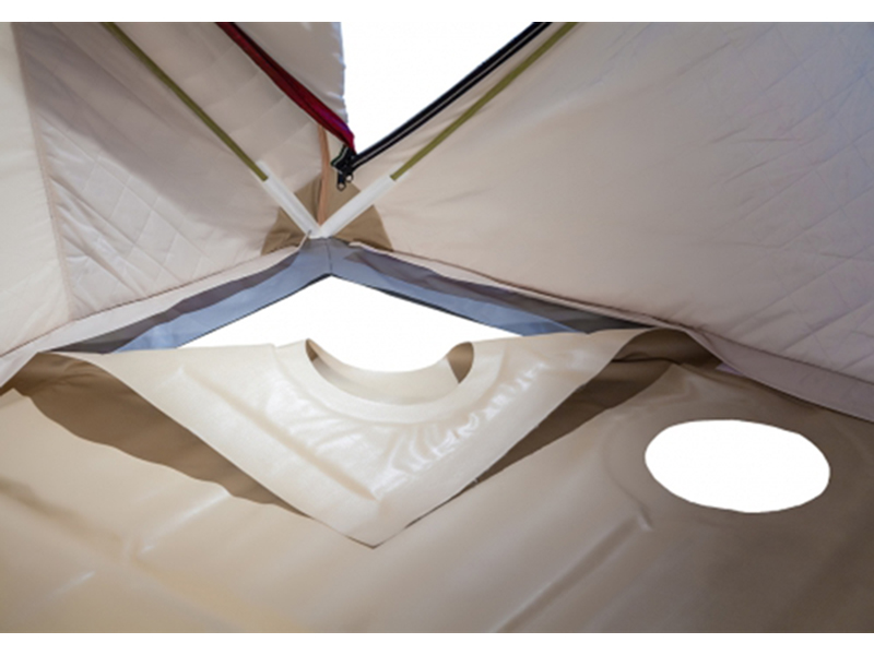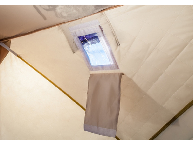 Палатка оснащена отстегивающимися клапанами для притока свежего воздуха. Окна также оснащены съемными прозрачными клапанами, благодаря чему можно регулировать и настраивать вентиляцию.
