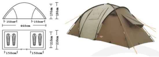 Классическая двухкомнатная кемпинговая палатка для несложных походов и семейно- го отдыха на природе. Конструкция позволяет использовать ее как в лесной зоне, так и в степной равнинной местности. Высокопрочное дно изготовлено из армированного полиэтилена, не пропускает влагу и устойчиво к истиранию. High Quality каркас изго- товлен их фибергласса и обеспечивает надежность и устойчивость. Палатка оснащена дополнительными вентиляционными окнами, противомоскитной сеткой на централь- ном входе в тамбур. Внутри палатки имеется подвеска для фонаря и карманы для хра- нения мелочей. Модель Travel Voyager имеет два раздельных входа. Полог основного входа имеет дополнительные стойки и может использоваться в качестве навеса. Про- клеенные швы гарантируют герметичность и надежность в любой ситуации. Ткань тента: 190T P. Taffeta PU 3000MM Ткань палатки: 170T P. Taffeta + MESH Ткань дна: Tarpauling Вес: 10,1 кг Диаметр дуг каркаса: FRP 9.5 мм Дополнительные стойки: STEEL 16 мм Ремнабор: Самоклеющиеся заплатки 100 х 100 мм из ткани 190T P. Taffeta PU 3000MM