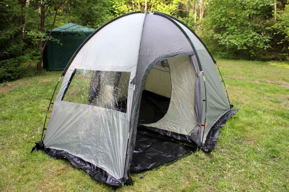 Тент: 100% Полиэстер 75D/190T PU 5000 мм в ст Внутренняя палатка: 100% дышащий полиэстер Дно: армированный полиэтилен (tarpauling) Каркас: HQ FiberGlass 11 мм Вес: 7,5 / 8,5 кг. Двухслойная кемпинговая палатка с двумя входами и большим тамбуром. Входы спального отделения дублированы москитной сеткой. Тент палатки оборудован юбкой. Большое спальное отделение. Большое вентиляционное окно. Кармашки для мелочей, крючок для подвески кемпингового фонаря. Дополнительные кармашки, чтобы убирать открытый полог входа. Оттяжки со светоотражающей вставкой. Кармашки для оттяжек. Удобные пряжки для регулировки длины оттяжек. Два входа в тамбур. Увеличенный тамбур для комфортного размещения поклажи. Внешний тент палатки устойчив к ультрафиолетовому излучению, ветру и дождю. Швы проклеены специальной лентой для защиты от проникновения влаги внутрь палатки.