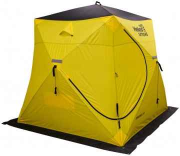"Палатка зимняя Призма EXTREME Helios v2.0 с широким входом предназначена для зимней рыбалки и позволит рыболову чувствовать себя максимально комфортно на зимней рыбалке в любых погодных условиях. В собранном виде палатка имеет трапециевидную форму с выпуклыми наружу стенками, что способствует увеличению внутреннего объема и позволяет рыболовам стоять в полный рост. Увеличенный размер входа позволит свободно заходить в палатку, даже с учетом вашей зимней одежды. Прочный каркас палатки выполнен из фибергласса (диаметр дуги 9,5мм) и обеспечивает сохранение кубической формы даже при сильном ветре. Тент закреплен к каркасу палатки и дополнительно зафиксирован к дугам каркаса фиксаторами на липучке. Дуги каркаса зафиксированы в углах палатки в специальные карманы из прочной стропы. На концах дуг закреплены защитные пластиковые колпачки, которые предотвратят порыв ткани в зоне стыка крыши и стен палатки. Металлический узел соединения дуг каркаса в отличие от пластиковых выдерживает даже очень сильные морозы. Прочная водостойкая ткань тента (полиэстер 300D, PU 2000мм) надежно защитит от ветра и атмосферных осадков. Проклеенные швы на крыше палатки препятствуют проникновению влаги в палатку. Тент палатки выполнен из желтой ткани, которая позволяет пропускать дневной свет во внутрь палатки, благодаря чему можно рыболов имеет возможность ловить рыбу в дневное время без подсветки дополнительными осветительными приборами. Крыша палатки выполнена из черного цвета, в солнечный день она поможет быстрее прогреть палатку. 2 больших двухслойных окна (прозрачные стекла и глухие шторки) на липучках. Окна расположены на таком уровне от пола палатки, что свет, проходящий через окно будет освещать зону рук рыбака, это сделает рыбалку более комфортной. С помощью светозащитной шторки, выполненной из ткани палатки, можно регулировать освещение в палатке и ее прогрев солнечными лучами, полностью или частично открывая шторку. Снегозащитная внешняя юбка (ширина - 20см), внутренняя юбка (ширина - 15см). Люверс (диаметром 12мм) усилен с обратной стороны юбки палатки прочной стропой, что гарантирует надежную фиксацию люверса. Увеличенный размер люверса позволяет крепить палатку ко льду различными бурами-ввертышами. Вход палатки застегивается на усиленную молнию с 2 бегунками. Защитный клапан защитит от проникновения снега и ветра в палатку. Система вентиляции состоит из 2 вентиляционных и 1 приточного клапана внизу палатки, которые обеспечат постоянное циркулирование воздуха, создадут комфортный микроклимат внутри палатки, а также не позволят угореть находящемуся в ней рыболову. В комплект входят 8 ввертышей и 4 прочные оттяжки для более надежной фиксации палатки ко льду. Палатка складывается в прочную сумку-чехол, имеется лямка для удобной переноски через плечо. Характеристики: • Размер в рабочем состоянии: (200х200х206 см (по дну палатки), 150х150м (по верху палатки) • Вместимость: 2-3 чел. • Вес: 6,45 кг • Размер в сложенном виде: 150х21х21 см
