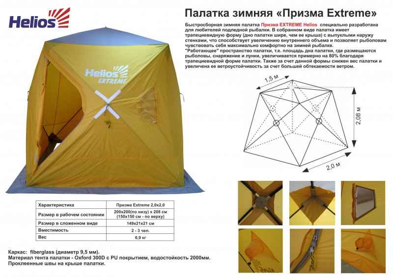 Каталог » ЗИМНЯЯ РЫБАЛКА » Палатки для зимней рыбалки » Палатки для зимней рыбалки Тонар » Палатка зимняя Призма EXTREME Helios 2,0х2,0 | Корзина | Оформить заказ |