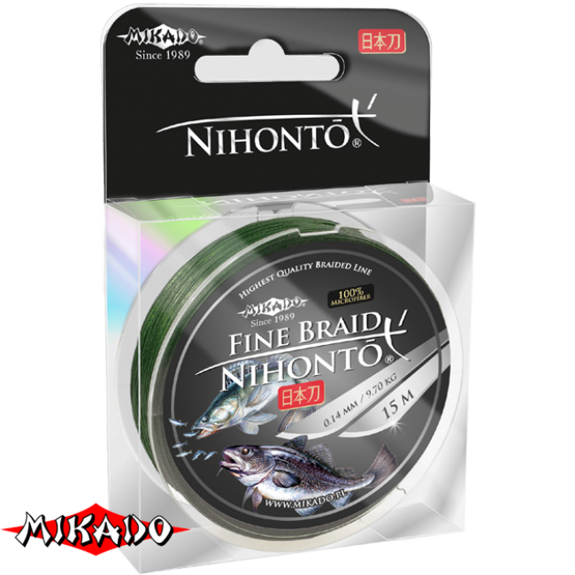 Плетеный шнур \" Mikado \" NIHONTO FINE BRAID GREEN 0,06 ( 15м ) - 3,25кг (Z21G-006)