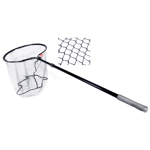 дл.220см/разм.60х60см/яч.1.5х1.5см/дл.тр.110см/мат.полиэстер прорезинен. Разборный телескопический подсачек с мощной рукояткой и сачком из прорезиненного полиэстера. Сетка из такого материала меньше травмирует рыбу и сводит к минимуму запутывание в ней крючков.