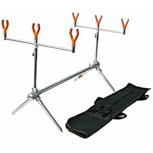 (для карп. уд.) мат.дюралюм. Подставка для установки трех карповых удилищ. Изотовлены из металла и при транспортировке упаковываются в специальный чехол.