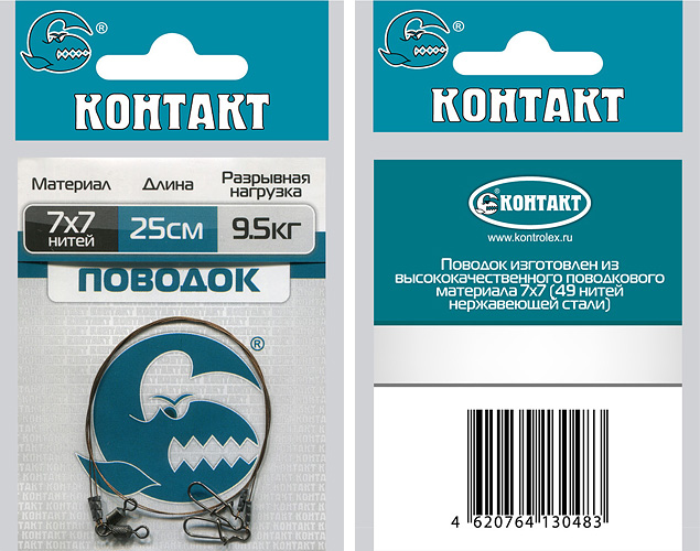 Каталог » ОСНАСТКА » Поводки » Поводок Контакт » Поводки стальные КОНТАКТ 9,5кг, 25см 7х7 (2шт)