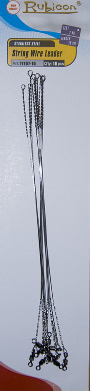 Стальной поводок струна со скруткой с обоих сторон. Легко выпрямляется после деформации и поклевки рыбы. Используется в основном при джиговой ловле, однако может применяться в любых других спиннинговых или жерличных оснастках.