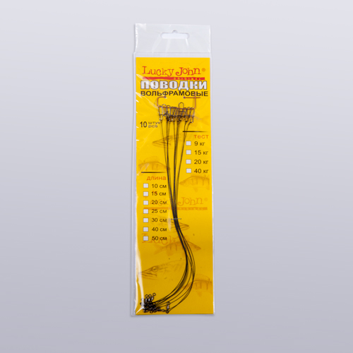 Каталог » ОСНАСТКА » Поводки » Поводки Lucky John » Поводки вольфр. оснащ. вертл. и застеж. 20кг 15см 10шт.