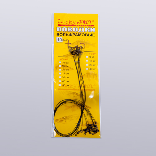 Каталог » ОСНАСТКА » Поводки » Поводки Lucky John » Поводки вольфр. оснащ. вертл. и застеж. 40кг 50см 10шт.