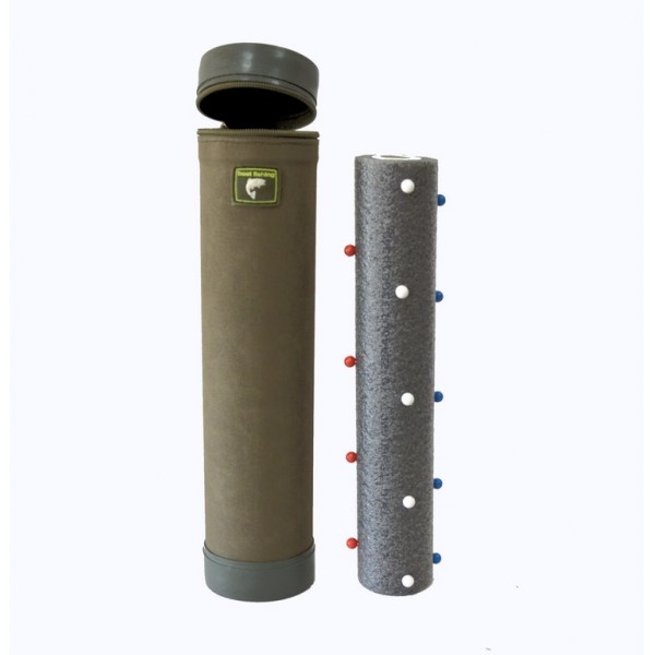 Поводочница Пв-01 предназначена для хранения длинных поводков. Поводочница состоит из 2 частей: мотовила и тубуса. Длина 28 см, диаметр тубуса 75мм.