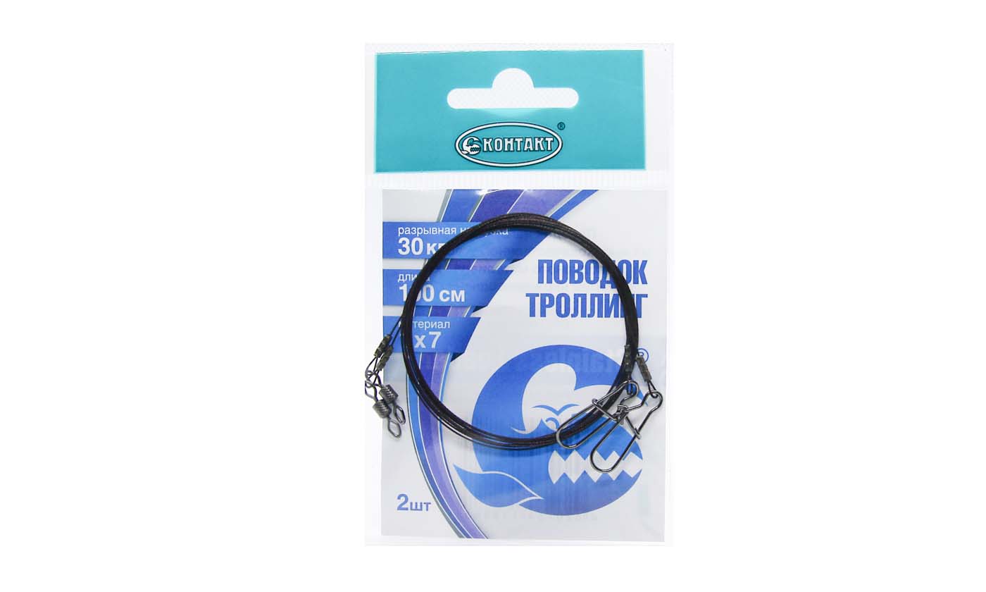 Каталог » ОСНАСТКА » Поводки » Поводок Контакт Тролинг » Поводок КОНТАКТ Троллинг 1х7 стальной / Тест 30 кг / Длина 100 см (упаковка 2 шт.)