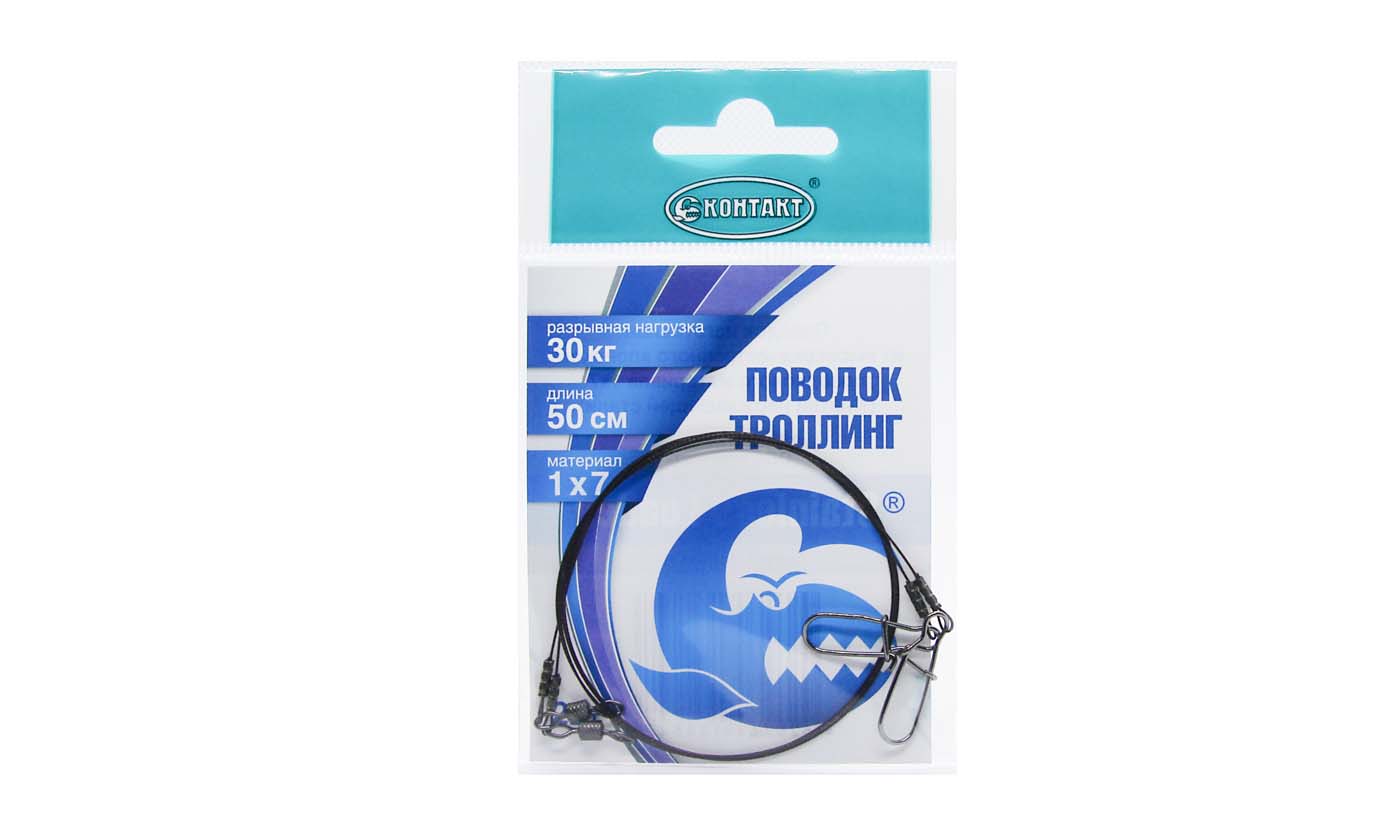 Каталог » ОСНАСТКА » Поводки » Поводок Контакт Тролинг » Поводок КОНТАКТ Троллинг 1х7 стальной / Тест 30 кг / Длина 50 см (упаковка 2 шт.)