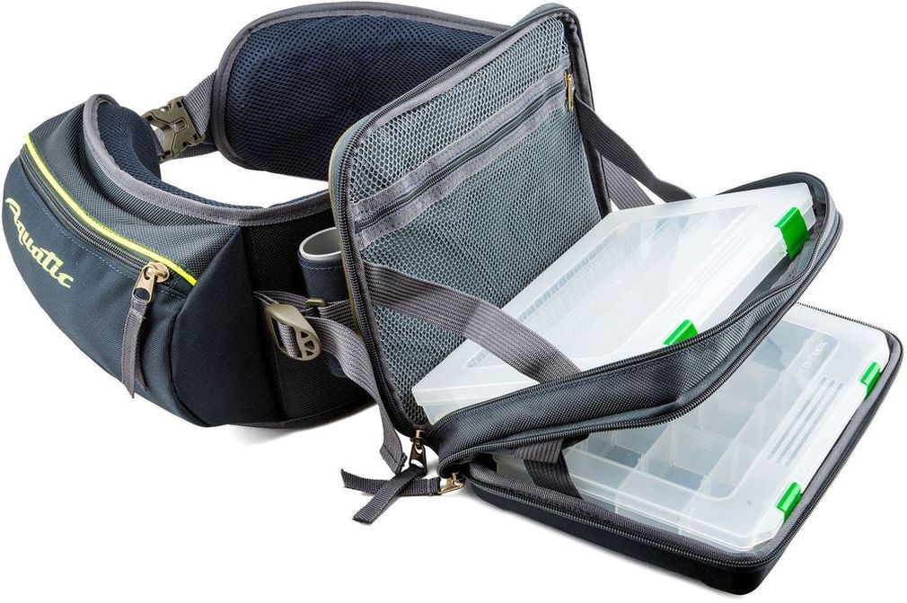 Пояс разгрузочный Aquatic ПР-04 (синий) Рыболовный пояс-разгрузка предназначен для ходовой ловли. В поясе имеется 2 кармана под коробки с дополнительными отделениями для аксессуаров. Верхний карман имеет жесткий формованный каркас. Задняя часть усилена пластиком. Комплектуется рыболовными коробками FB-250 ( 255x188x39 мм) и FB-250 SH ( 255х188х20 мм). Пояс имеет жесткий стакан для удилищ и два объемных кармана для аксессуаров. На поясе применены светоотражающие элементы. Жесткость самого пояса обеспечивает лист эвапоры, а мягкость специальный поролон с низким коэффициентом памяти и водопоглощения. Сумка с коробками снимается и может использоваться отдельно. Если перевернуть пояс, то его можно использовать как поддержку спины, что очень важно для людей с проблемами поясницы. Длина жесткой части пояса 90 см, ширина 16 см.