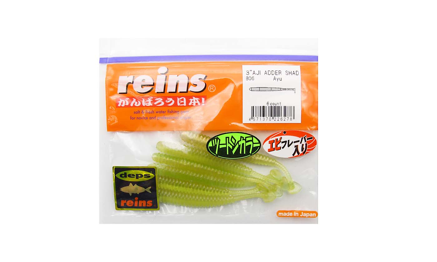 Каталог » МЯГКИЕ ПРИМАНКИ » Мягкие приманки Reins » Aji Adder Shad » Aji Adder Shad 3" » Приманка силиконовая REINS Aji Adder Shad 3" Deps (упак. 6 шт.) / B06 - Ayu