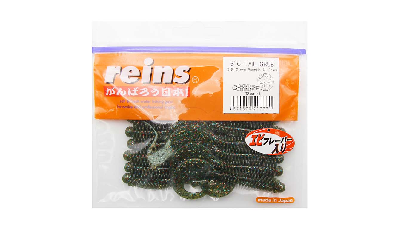 Приманка силиконовая REINS G-Tail Grub 3" (упак. 12 шт.) / 009 - Green Pumpkin All Stars