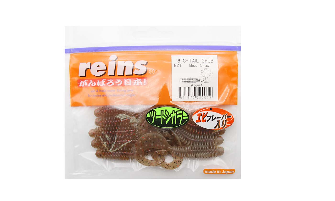 Каталог » МЯГКИЕ ПРИМАНКИ » Мягкие приманки Reins » Мягкие приманки Reins G-Tail » G-Tail Grub » G-Tail Grub 3" » Приманка силиконовая REINS G-Tail Grub 3" (упак. 9 шт.) / B-21 - Miso Craw
